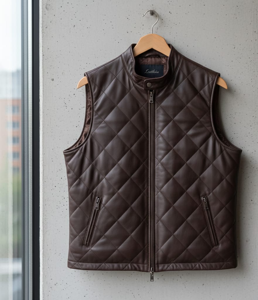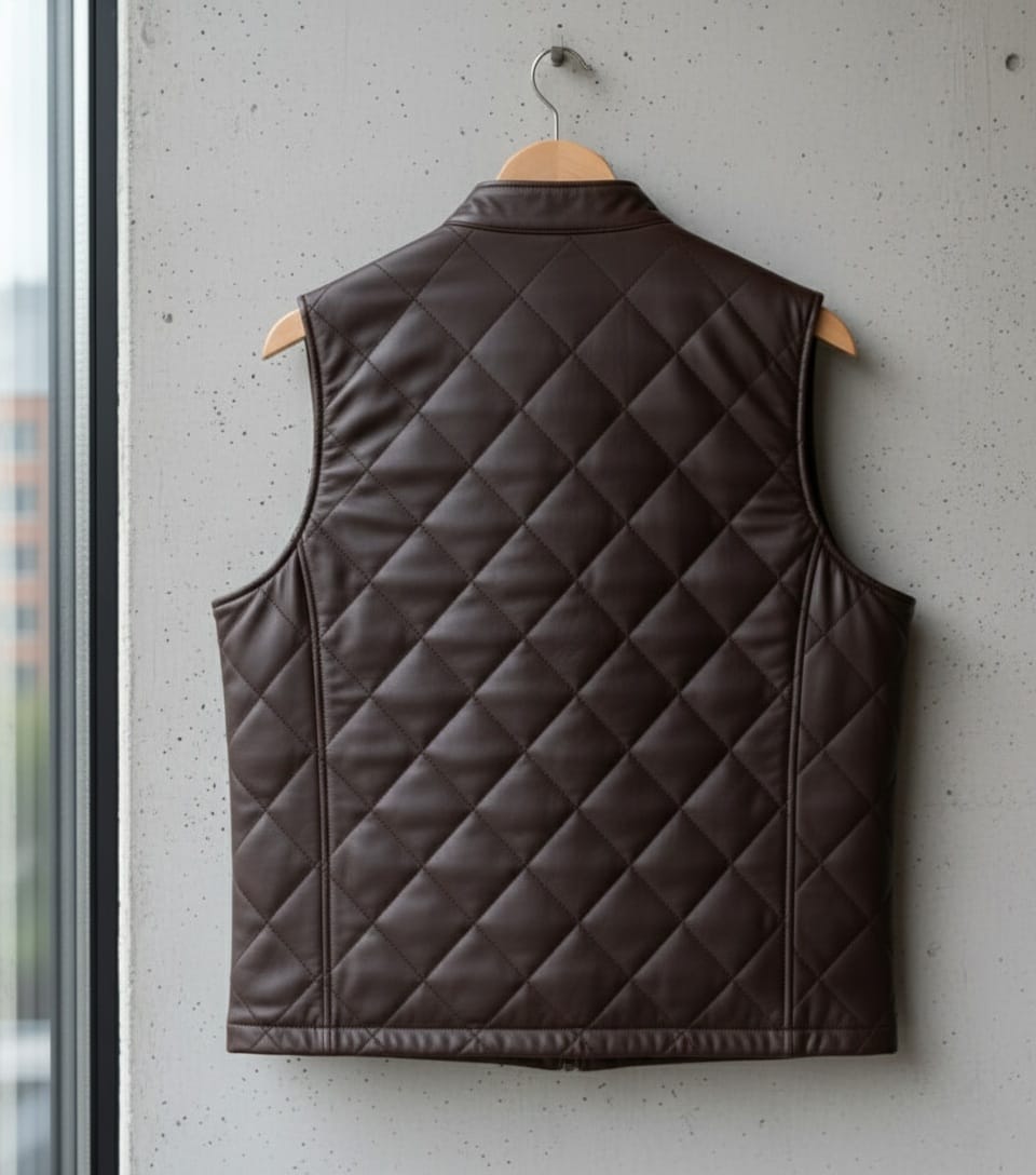 Brown Quilted Leather Gilet