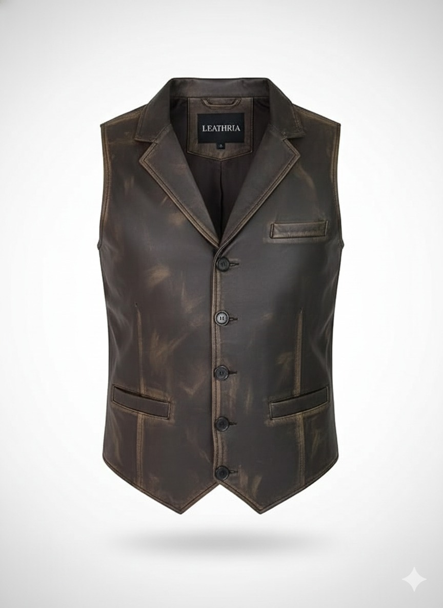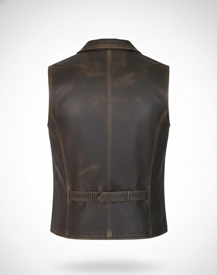 Vintage Distressed Leather Waistcoat